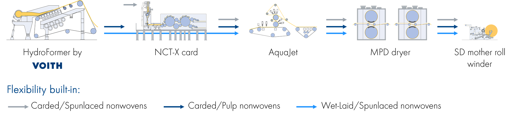 A flexible CP nonwoven line