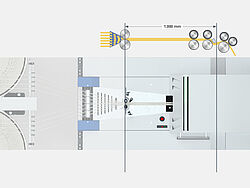 O período de tempo entre a medição da espessura da fita e a ação de controle determina o ponto de início de regulagem. Isto tem uma enorme influência sobre a precisão da regulagem da fita fibras. Até agora, eramsários uma séries de testes demorados de laboratório com as fitas.